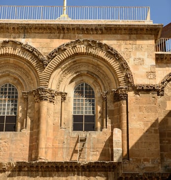 No one knows exactly when, but best estimates say at least 1728 (AD) or earlier. One sunny afternoon, I imagine, or at least a pleasant one, a stone mason hauled a basic but sturdy cedar wood ladder to a large church window ledge. He leaned the timber tool against the building and proceeded with whatever task he set out to do. Duties completed, the worker scaled up the five rungs, entered back into the building through the open window, and, for whatever reason, left the ladder. Although this doesn’t appear odd or unusual, what happened next truly is. You see, this “church” wasn’t simply a common edifice located in a sleepy, no-name town. This place of worship is said to house the actual tomb Jesus Christ Himself walked out of three days after a horrifying death by Roman-style crucifixion.