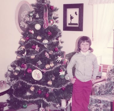 Our “festive” living room presented no improvement from the outdoors. Mom gave nary a whit about focal points, spatial planning, or color schemes. Year after year, I pulled our artificial tree out of storage, knocked off any formed mud dauber nests, and set it up for Mom to swamp the plastic pine with every ugly bauble imaginable. Handmade ornaments from my days in kindergarten through 5th grade held prominent spots. Various branches held up dreadful winged cherubs knitted by my grandmother and her yarn-loving friends. A myriad of unsightly handmade or hand-me-down knick-knacks sat on table tops, shelves, and on top of Dad’s baby grand piano. Sure, at 6-years-old I thought they were “neat,” but also at that age I remember asking Dad during our local Christmas parade why horses festooned in green tinsel and red bows trotted down Broadway after the final float bearing Mr. and Mrs. Clause. Dad chuckled at my confusion and assured me, “The horses always come last.”
